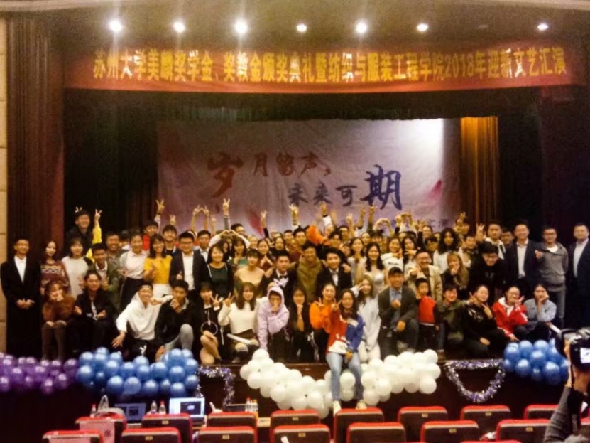 第一幕结束,第一轮抽奖也随即开始。本轮由刘海老师抽奖,抽出三等奖三名,二等奖两名,奖品分别为保温杯和电脑桌。第二幕的节目五是青鸟剧社为我们带来的《拜托了,教练》,他们用富有表现力的演技为大家呈现出诙谐又有深意的一个小故事。随后的节目六是由道格跆拳道社带来的精彩表演——《武跆》,他们的表演处处彰显着力量之美,让观众们不禁从内心深处发出感叹。在阵阵掌声中,我们迎来了节目七——由张天驰、王心玥等人带来的歌曲串烧《再见,昨天》,回忆是促使我们不断向前的动力,让我们更好的前行。灯光再次亮起,到了最后的抽奖环节,卢永嘉老师为本轮抽奖抽出一等奖一名和特等奖一名,奖品为超大超可爱的玩偶熊和VR眼镜。作为今晚的最后一个节目,由王铭玥、凌浩等人带来的小品《光阴的故事》令人眼前一亮,青春是条单程线,而朋友会永远伴我们前行。第二幕结束,全体演员合唱《夜空中最亮的星》,随着音乐声的结束,本次迎新文艺汇演也落下了帷幕。每一次分别都是为了更好的相聚,本次迎新文艺汇演圆满结束。纺织服装,举世无双!感谢所有纺服人的精彩表演和辛苦工作,是所有人共同的努力才让这个晚上变得那么与众不同。让我们把每一次相遇都铭记在心,展望更好的明天。