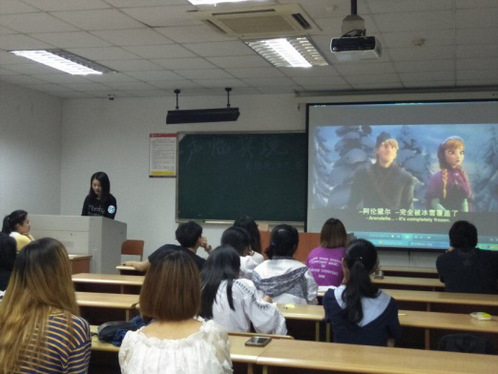 本次活动英语俱乐部准备了六个电影原音视频和六个消音视频,参赛者根据兴趣选择了喜欢的电影片段进行配音。参加比赛的共有八个队,其中五个是个人,其余是团队。他们在比赛过程中充分发挥了自己的才艺特长,将自己所表演的角色表现的淋漓尽致。其中个人配音更是一人饰多角,声色声调转换自如。他们的配音不仅英语口语地道,而且对人物的情绪把握恰如其分,语言模仿堪称得上惟妙惟肖。他们的配音各有特色,不一样的声音碰撞在一起,给我们带来了一场听觉的盛宴,观众们可谓一饱“耳福”。八个队配音结束后邀请老师进行点评,同时工作人员将投票统计并由社长公布结果。整场比赛历时一个多小时,最终Soundcloud队龚依澜、蒋林秀和王梦梦同学在以《神偷奶爸1》影片配音中优异的表现夺得了一等奖。其余奖项是两个二等奖,两个三等奖。