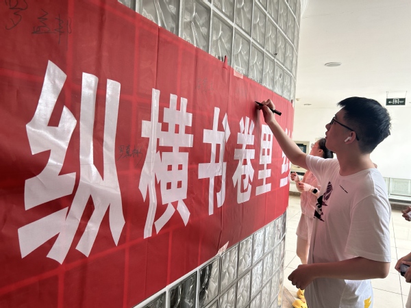活动开始前,考研学子依次在横幅上郑重签名。笔尖落下的瞬间,既承载着学子们对考研目标的坚定信念,也凝聚起并肩奋进的决心,尽显昂扬向上的备考姿态。