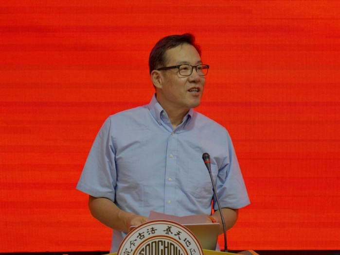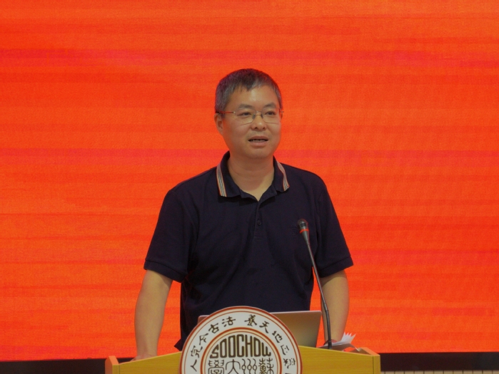 教师代表、博士生导师李若欣教授对2025级新生的到来表示热烈欢迎。他勉励新生既要筑牢专业知识根基,更要跳出书本、扎根实践,以饱满的姿态迎接大学生活,以“勤思考、勇发问”的态度探索学科边界,在苏大的平台上绽放青春光彩,不负韶华时光。