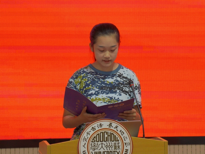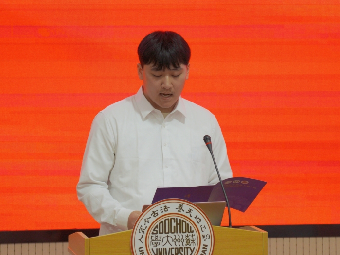 2025级纺织工程专业学生濮含卿同学代表全体新生发言。她表达了对于加入纺织服装与工程学院这个大家庭的喜悦,以及对美好大学生活的憧憬。同时,她从角色转换、修身立德、博学创新三个角度出发,提出了自己关于大学生活的想法,号召同学们秉持“诚谨勤朴,经纶天下”的院训,在苏大的沃土上,用勤奋浇灌梦想,用担当书写青春,不负时代重托
