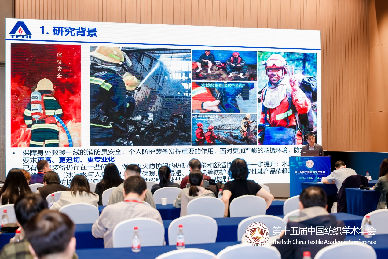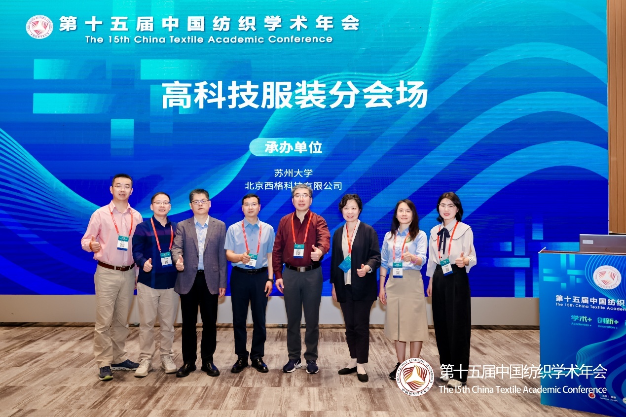 在“高科技服装”分会场的专家报告中,连之伟教授讨论了《卧室环境下人体的热舒适与睡眠》,强调建筑环境如何影响人体的舒适度和睡眠质量。王云仪教授阐释了《服装防寒功能解析及功效评价方法》,深入解析服装防寒性能的工效学评估。杨杰教授展示了《高温环境人体热防护与舒适模拟研究》,分享关于人体热舒适性模拟的最新进展。卢业虎教授带来《人体-睡眠寝具界面热力学耦合研究及应用》,探讨睡眠状态下人体与寝具之间的相互作用。杜冰岩会长介绍了《中国服装行业科技创新发展现状与趋势》,揭示行业前沿的科技创新方向。刘莉教授展示了《奥运高性能比赛服的科技创新》,展示高科技服装在运动赛事中的应用。王俊胜研究员的报告《基于功能纺织品的高性能消防员防护服装的研制》,为制备高性能消防服提供技术指导。陈百顺教授分享了《户外功能产品的研发方向与趋势》,展望高科技服装的广泛应用前景。