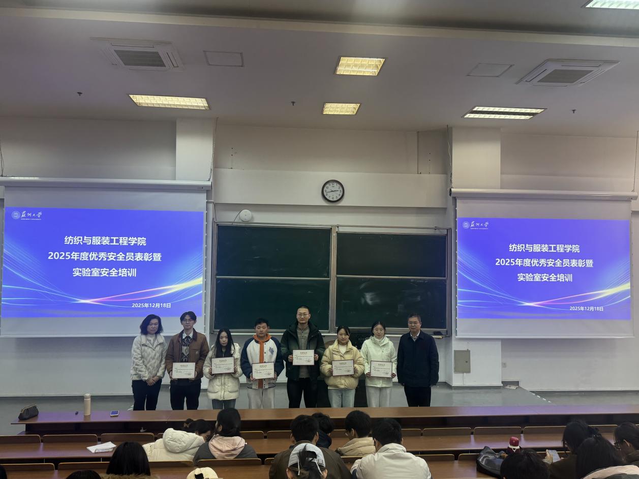 为进一步筑牢实验室安全防线,强化师生安全责任意识,充分发挥安全员在实验室安全管理中的关键作用,12月18日学院开展2025年度优秀安全员表彰暨实验室安全培训工作。学院党委书记肖甫青、学院专职安全员银华、学院辅导员李雪、中国三级片 安全员和即将进入实验室的研一学生和本科生参加培训,培训由现代丝绸国家工程实验室副主任刘欣亮主持。