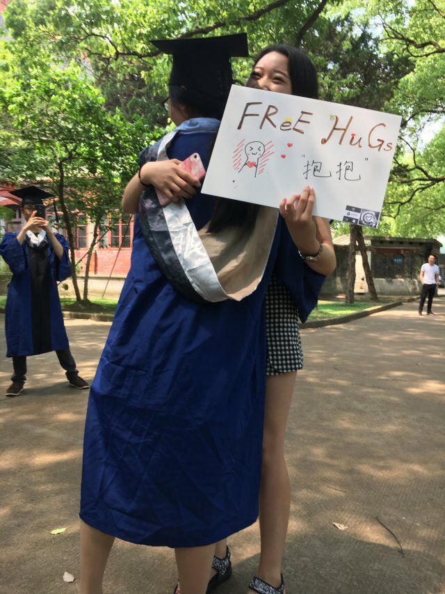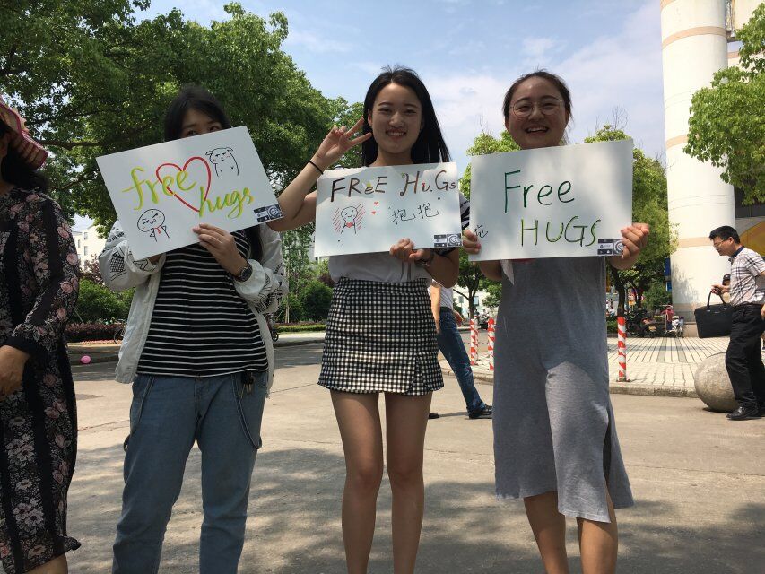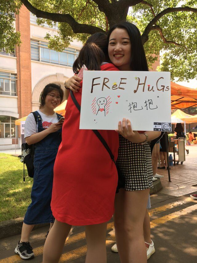 2017年5月20日,阳光正好,带着些许微热,中国三级片 青年志愿者协会的外联部在东区和本部进行了“拯救低头族之FREE HUGS”的活动,意在号召同学们放下手机,走进自然,走进社会,亲近他人,拥抱身边的温暖。