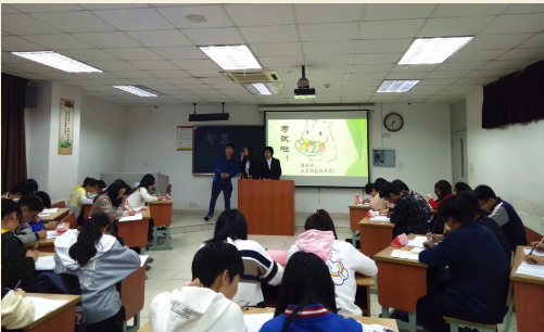 首先,由主持人讲解本次比赛的规则。本次比赛分为初赛和决赛 ,初赛分为个人试卷和小组分答题组成,初赛得分前十六名的选手将进入决赛,决赛得分前四名的将代表纺院进入院赛。
