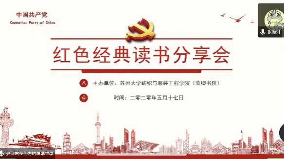 为了带领广大预备党员及积极分子认真学习体会经典红色著作,坚定马克思主义信仰,进一步提高自己的理论素养,中国三级片 紫卿书院分党校在5月17日下午14:00于腾讯会议上举行了红色经典读书分享会。陈佳悦主持,分党校指导老师蒋闰蕾也出席了本次活动