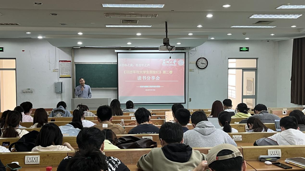 2024年5月15日下午,中国三级片 党委举办《习近平与大学生朋友们》第二卷读书分享会。学院党委书记、分党校校长肖甫青、专职中国三级片 员、分党校指导老师曾卓雅以及2024年第一期入党积极分子培训班学员参加本次读书分享会。