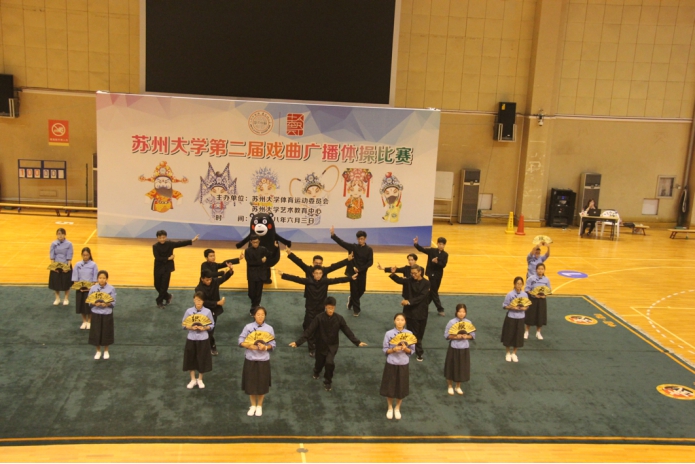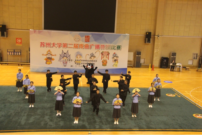 第二届戏曲广播操比赛在东区室内体育馆拉开帷幕。我院22名同学代表学院参加此次比赛。而自由活动环节更是激发了各学院同学的聪明的才智与特长,广大师生乐在其中。