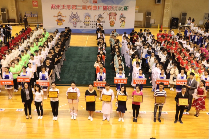 领导致开幕词,鼓励参赛学院部赛出水平,赛出风格,赛出最优异的成绩,宣布苏大第二届戏曲广播体操比赛成功举办。整个赛场顿时沸腾起来,加油声助威声此起彼伏,络绎不绝。