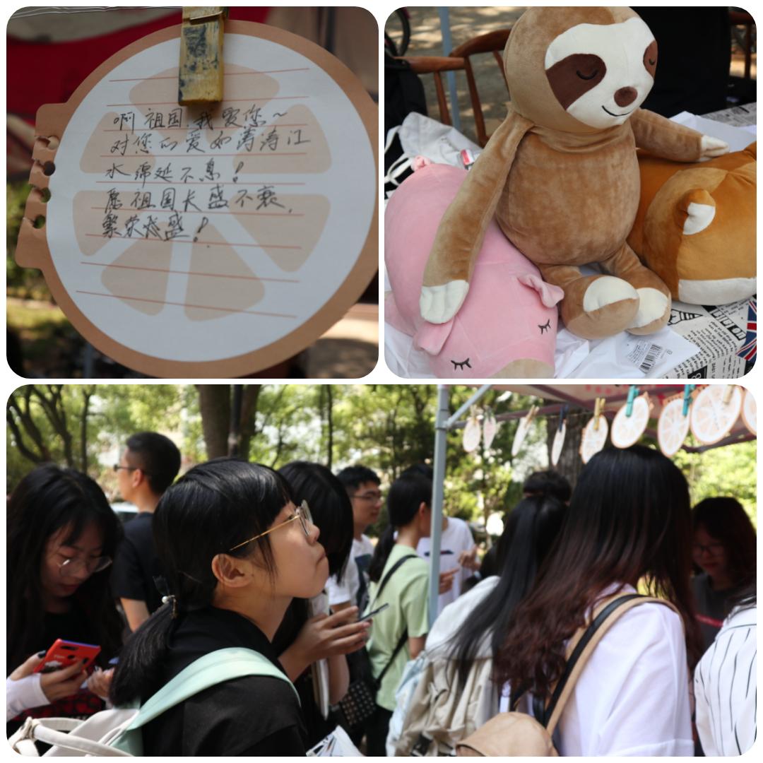 活动开始,同学纷纷报名参加,首先第一个环节是知识问答,通过这个环节,我们充分了解到同学们知识的渊博和对祖国母亲的密切关注,问答结束后,便由工作人员根据答对的题数来给予不同的奖品,其次第二个环节便是对祖国母亲的祝福,精致的小卡片上写满了同学们对祖国的关心和热爱,片言只语却足见其对祖国母亲情之深爱之切。最后一个环节采用线上进行的形式,同学们以照片对比的方式或准备书法、绘画或文章来展现中华人民共和国成立70周年的变化,并表达对祖国的美好祝愿,最终进行网上评比并发放奖品。