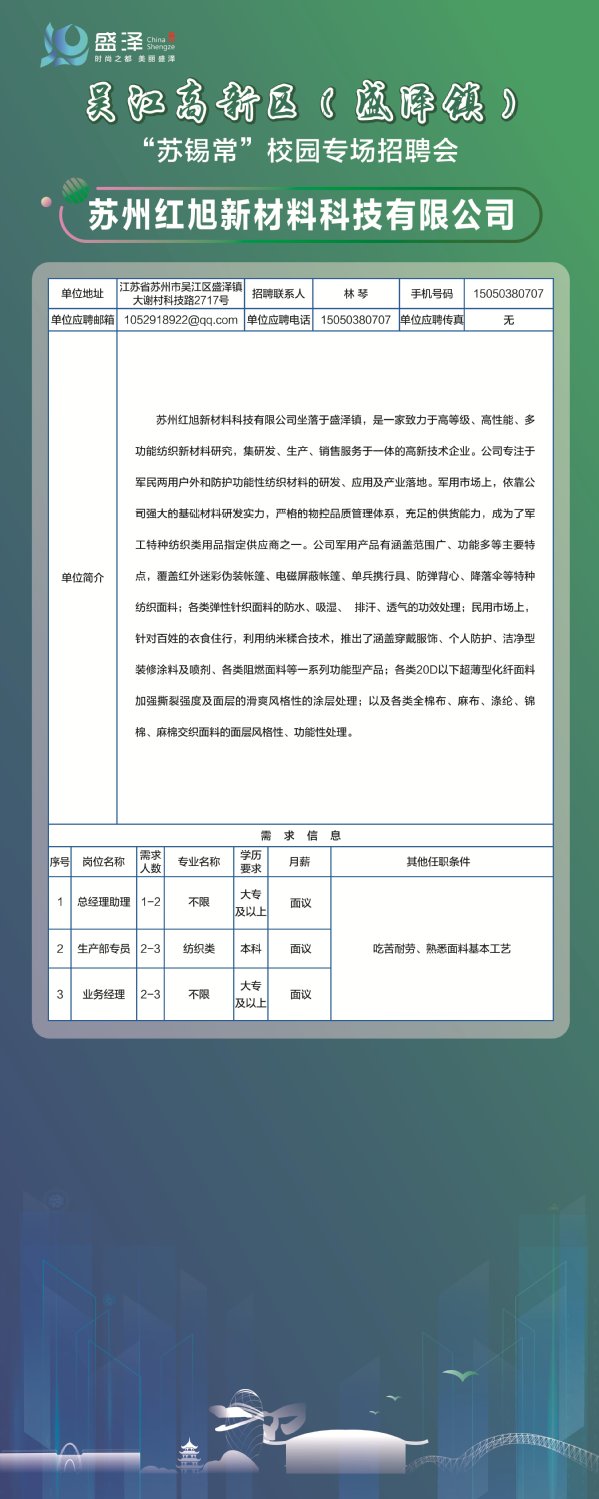 【招聘信息】苏州红旭新材料科技有限公司