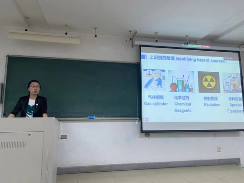 蒋芸主任从学会看标识、识别危险源、应急物资的位置和正确使用、做好个人防护、实验室中的国家安全及其他日常安全等六个方面做了系统阐述。讲座通过国内外实验室安全事故案例、化学实验室安全注意事项及应急处置流程向同学们重点强调了积累安全知识、增强安全意识、正确做好个人防护的重要性。图文并茂的文稿演示、事故案例的视频展示、幽默诙谐的语言呈现让讲座中充满欢声笑语,更让同学们体会到本次讲座的标题——思周则全、行妥方安的深刻含义。