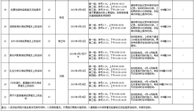 2025年春学期大仪培训—实验项目、培训时间及分组安排汇总.xlsx
