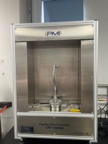 | CFP-1500 A全自动比表面孔隙测定仪 美国PMI仪器公司 存放地:908幢2310 | 本仪器用于测量纤维集合体材料如织物、非织造材料等孔隙结构,仪器借助于液体排驱技术,测量通孔孔径及气体渗透率。 |